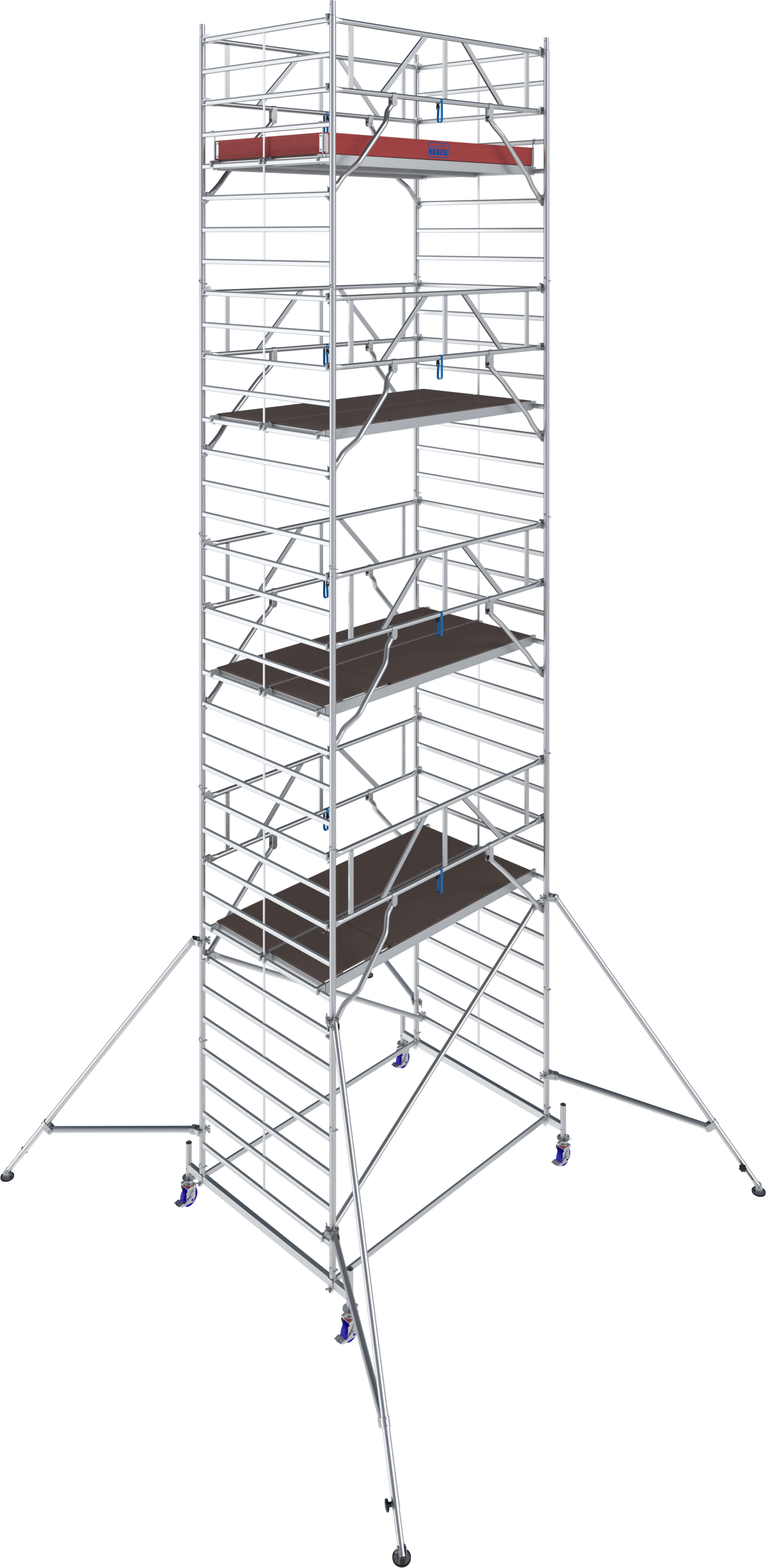 • Koriste se točkovi sa podešavanjem visine i kočnicama – skela je pogodna za rad i na neravnim terenima.